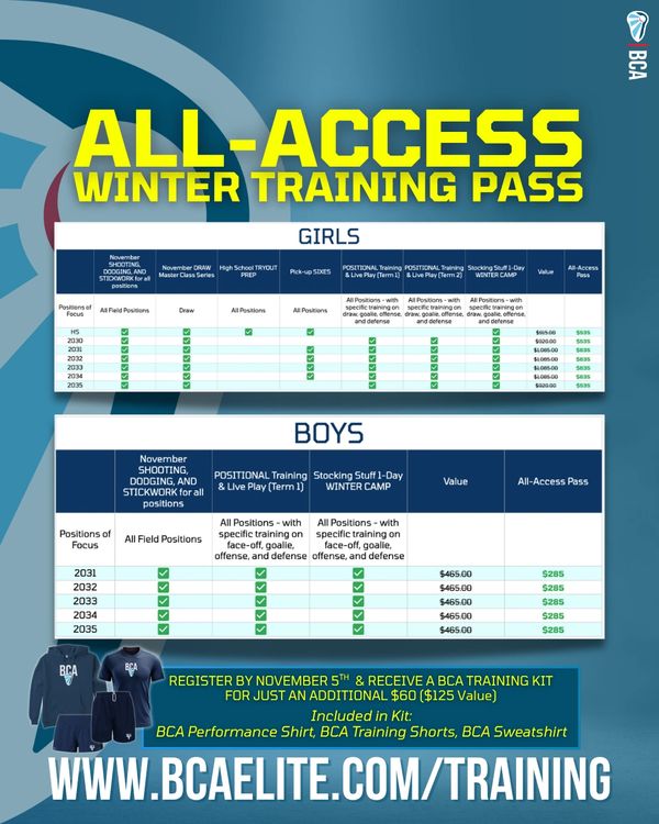 Train with BCA all winter at one steeply discounted price!!!
